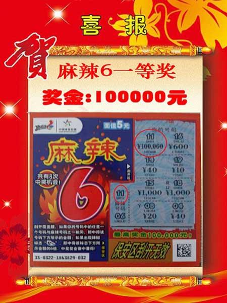 王先生此次中奖真的是机缘巧合,有种“命中注定”的感觉。他接触彩票已经有很多年了,对于体彩各类型游戏的玩法都比较了解,尤其热衷于“超级大乐透”和“11选5”这两个玩法。他说:“今天一早我照例出来赶早市买菜,而到菜市场必经的路上就有一家彩站,由于时间还早,买完菜我就顺路进了彩站,先研究了一会儿‘11选5’。后来看到有‘顶呱刮’,一下来了兴致,就买了5张5元的‘麻辣6’,没想到第一张票刮开第一个数字‘11’就与中奖号码吻合,在刮下面对应的奖金时我发现数字写的特别小,我知道一定是个大数字,当时我是既激动又紧张,最后看到1后面那一串‘0’,再一数,整整10万元,今天真是太幸运了,这让我对体彩‘顶呱刮’真是太喜爱了,我对他的热衷更是不会改变了。”