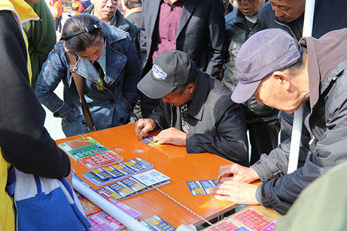 现场气氛十分火热,许多观众对现场票面精美、中奖率高的体彩顶呱刮产生浓厚的兴趣,在了解玩法后,纷纷来到桌前刮起彩票来,很多观众都中了奖。