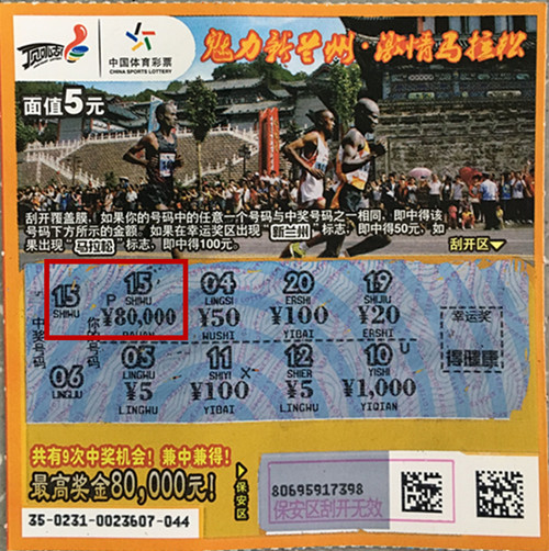 据悉,“魅力新兰州、激情马拉松”主题即开彩票面值5元,最高奖金8万元。值得一提的是,这套彩票在奖级的设计上可谓独具匠心,打破了常规彩票的最高奖设计,将更多的奖金用于常规奖项,让您的中奖体验锦上添花。另外,这款彩票的中奖机会达到了9次之多,比常规的5元彩票具有更多的中奖机会。相信热爱公益、热爱体育的您已经跃跃欲试了吧,那就赶紧前往中国体育彩票销售网点体验一下“魅力新兰州、激情马拉松”这款主题即开型彩票吧!(陈静)