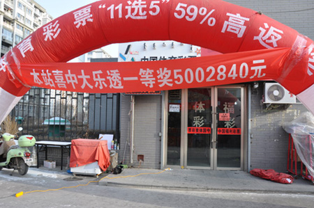 12月22日一大早,位于赤峰市新城区景泰苑小区西侧的体彩63541站点门前彩虹门高高矗立,鞭炮齐鸣,引来众多市民驻足围观。原来,这里刚刚中出大乐透一等奖一注,奖金5002840元。这是继11月13日赤峰市林西县中出870万大奖之后,本年度赤峰市中出的第二个大乐透一等奖。