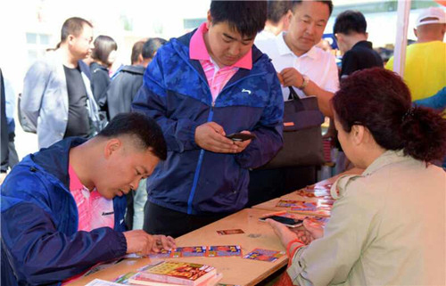 巴彦淖尔市体育彩票管理中心在开幕式现场搭建了即开“顶呱刮”户外小卖场,进行现场售卖,并且在小卖场旁边搭建了体育彩票宣传区域。巴彦淖尔市体彩中心此次采用了新鲜趣味的宣传模式,观众只要扫描关注“巴彦淖尔体彩”微信公众号便可领取5个套圈参与套圈游戏,赢得扑克、毛巾、刀叉、水杯、充电宝以及竞彩人物玩偶等奖品,吸引了众多人员参与。当天上午,巴彦淖尔体彩微信公众号关注人数就猛增164人,活动效果非常显著。